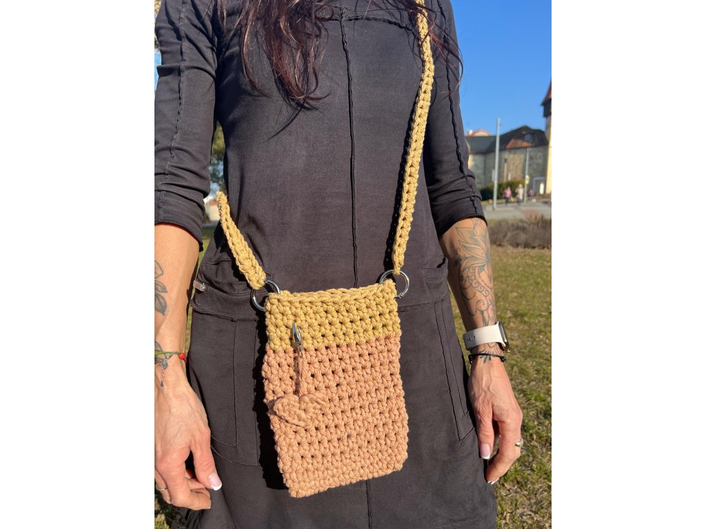 Ručně háčkovaná crossbody kabelka v jemné dvoubarevné kombinaci. Spodní část je ve starorůžovém odstínu, horní část ve světle béžové. Díky dlouhému popruhu ji můžeš nosit pohodlně přes rameno nebo jako crossbody kabelku. Praktický a originální ručně šitý doplněk na telefon a drobnosti.