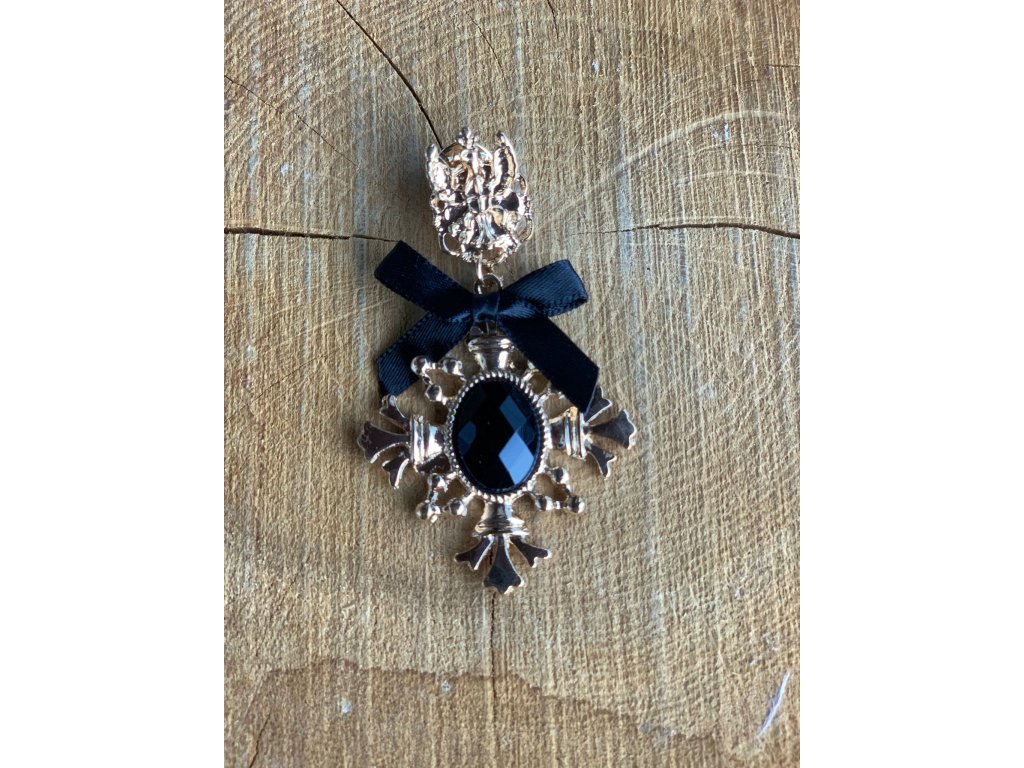 Brož s černým kamenem a mašlí