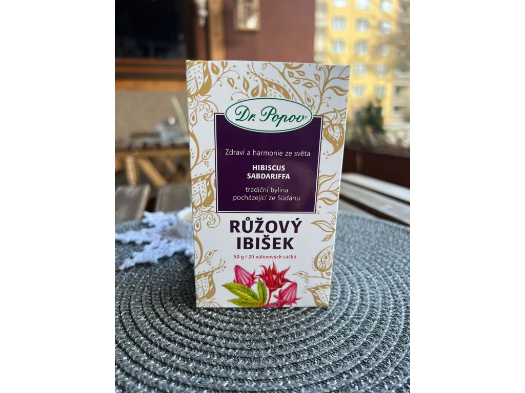 Bylinný čaj Růžový ibišek Dr. Popova je exotický sypaný čaj, ideální pro doplnění tekutin a solí při zvýšeném pocení – např. po sportu, práci při vysokých teplotách, při pobytech v tropickém klimatu nebo pro osoby, které se silně potí. Růžový ibišek obsahuje vysoké procento organických kyselin a vitamín C, podporuje správnou činnost ledvin a napomáhá odvodňování organizmus. Je také účinný při zácpě, pomáhá udržovat střeva ve zdravém stavu a působí jako antioxidant.
