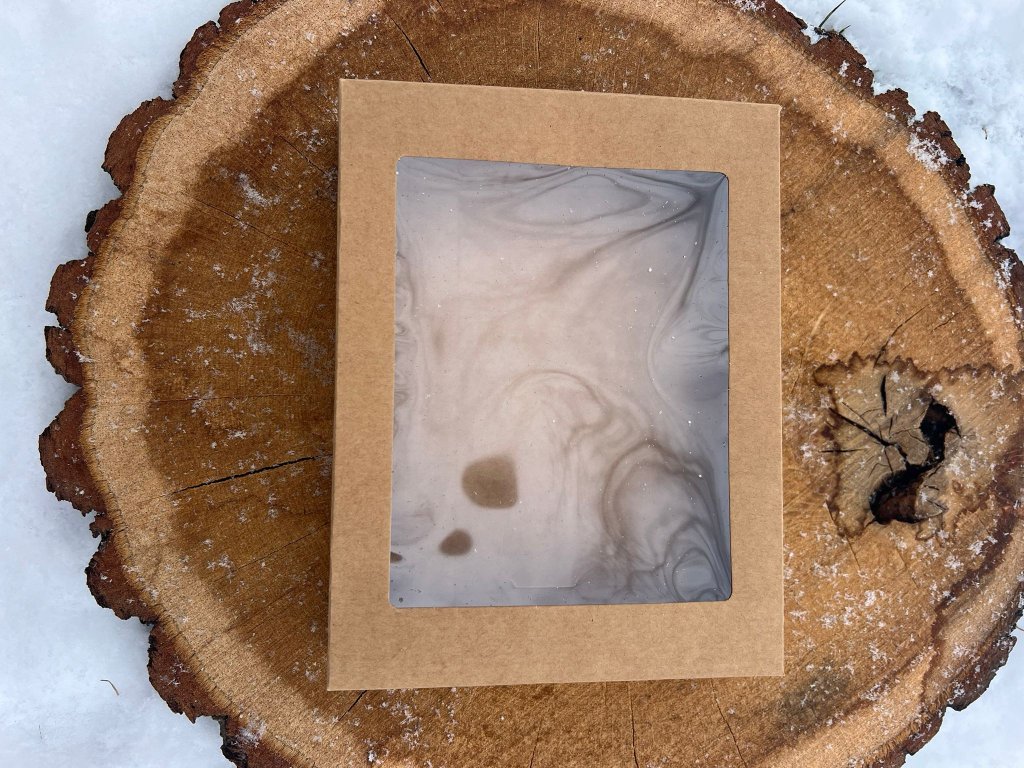 Dárková krabička s průhledem – přírodní karton 13,5 × 18 cm