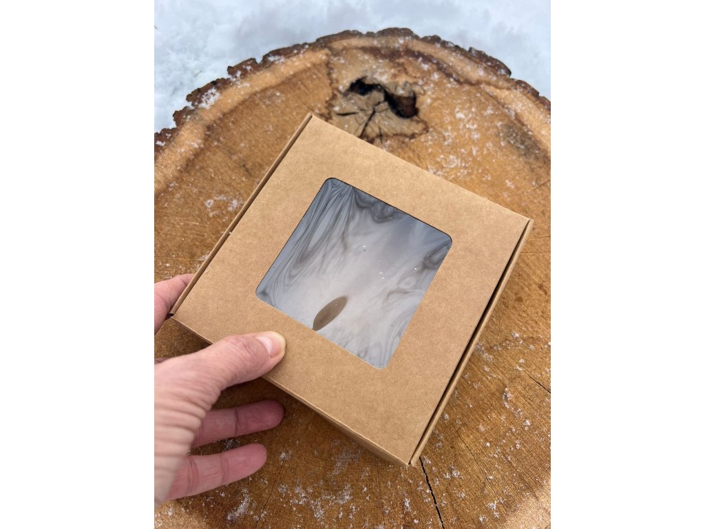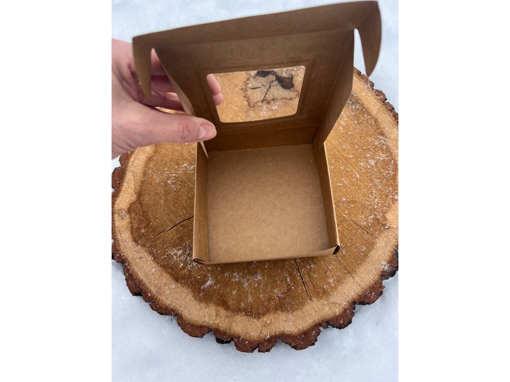 Dárková krabička s průhledem – přírodní karton 13 × 13 cm