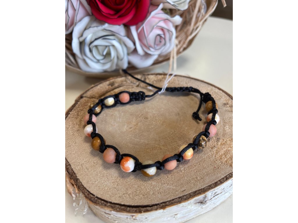 Drhaný náramek černý - Avanturín oranžový matný, Jadeit oranžovobílý a Jaspis obrázkový 6 mm