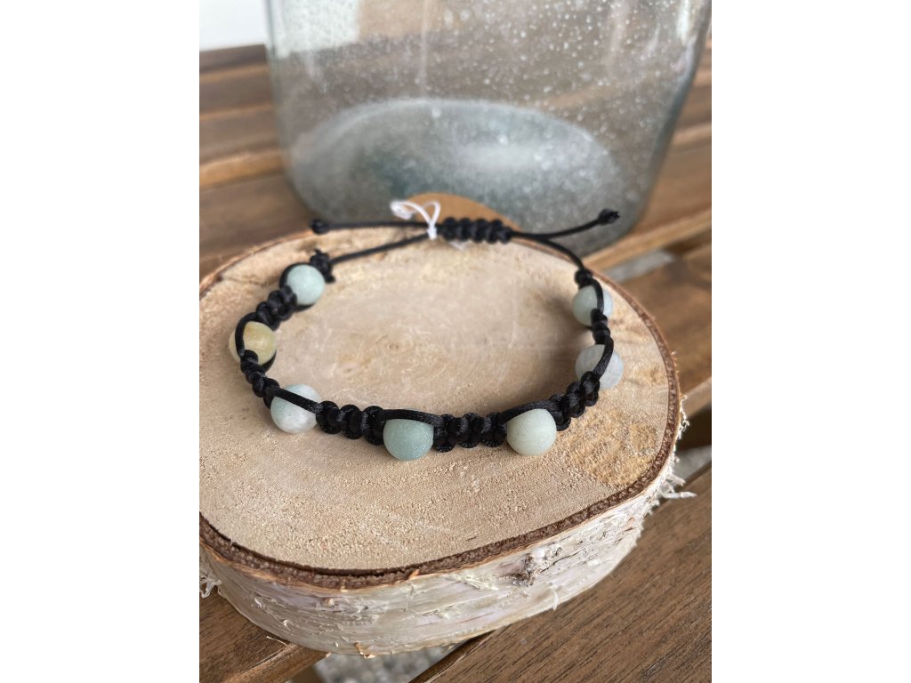 Drhaný náramek z černého provázku s amazonitem hnědým.