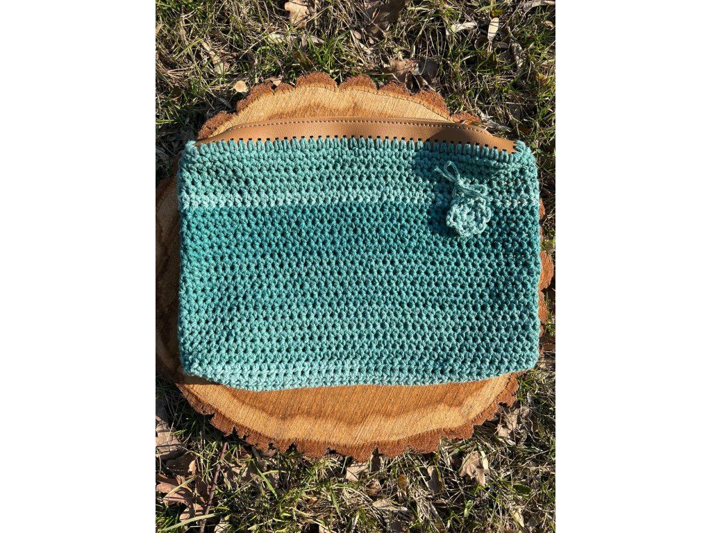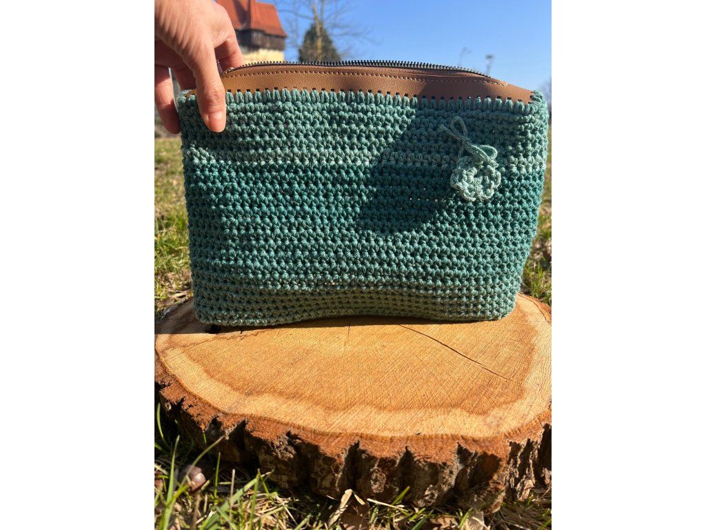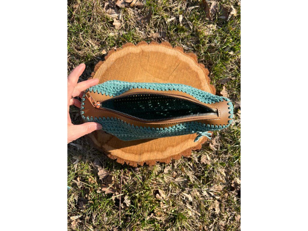Háčkovaná kabelka se zipem petrolejová