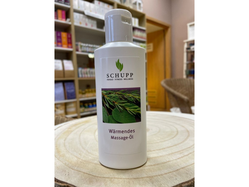 Masážní olej s jemným hřejivým účinkem, bez extraktu z pepře.