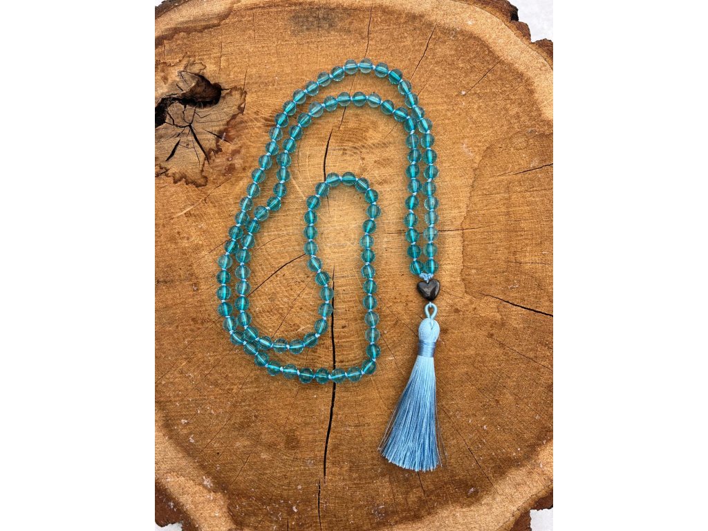 Elegantní Mala korálky ze světle modrých korálků působí klidně, svěže a harmonicky. Světle modrá barva je symbolem klidu, otevřené komunikace a lehkosti bytí – ideální volba pro meditaci, jógu i každodenní nošení jako jemný šperk.