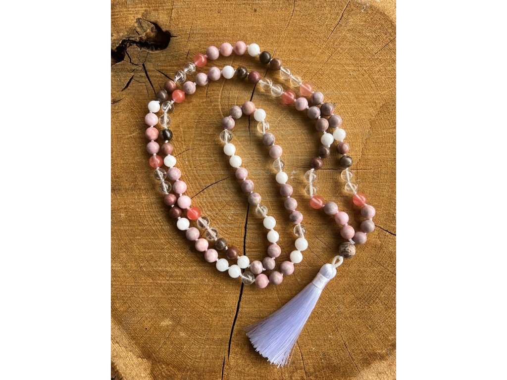 Objevte sílu a krásu tradičních Mala korálků, ručně vytvořených z přírodních, energeticky silných kamenů – Rodonit, Růženín (Křemen), Křišťál a Jaspis. Každý kámen v této sadě má své jedinečné vlastnosti a společně tvoří harmonický celek pro meditaci, jógu i každodenní nošení.