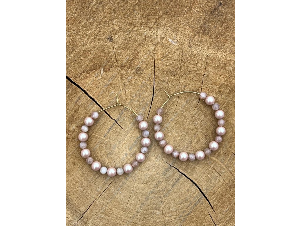 Kruhové náušnice - Sluneční a Měsíční kámen a Perla