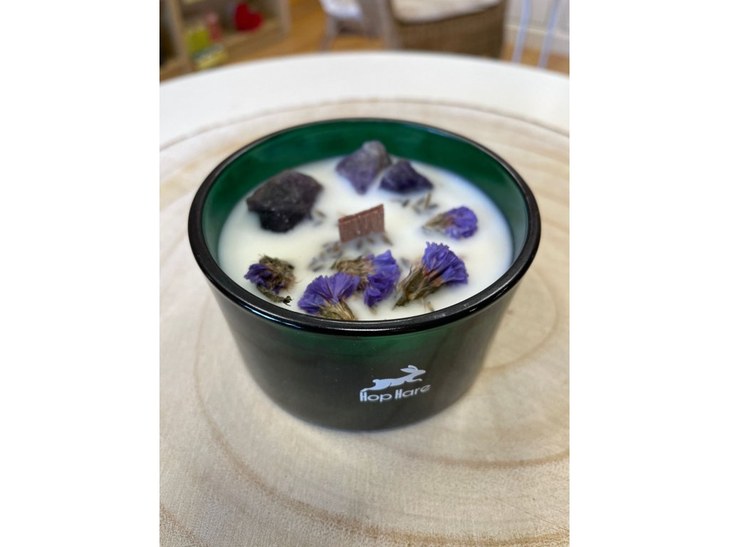 Křišťálové kouzelné svíčky – dokonalé spojení přírody, mystiky a kouzel. Pečlivě vytvořeny, Tato svíčka představuje cestu do světa, kde se sójový vosk, drahé kameny a sušené květiny spojují v harmonickém tanci.