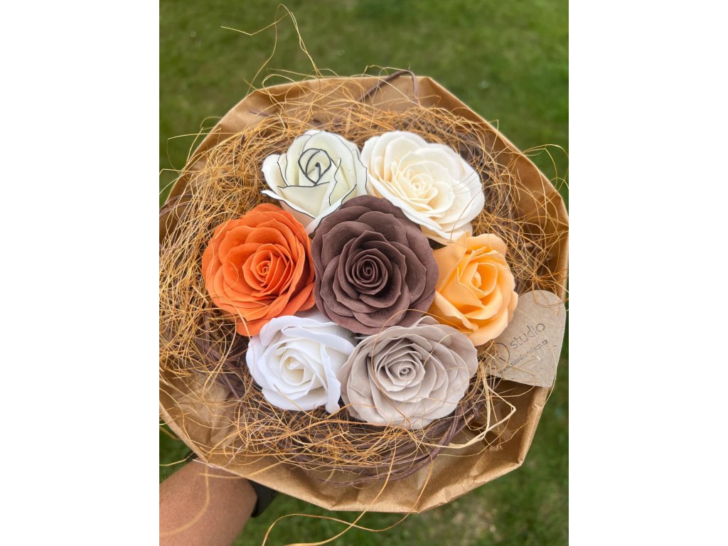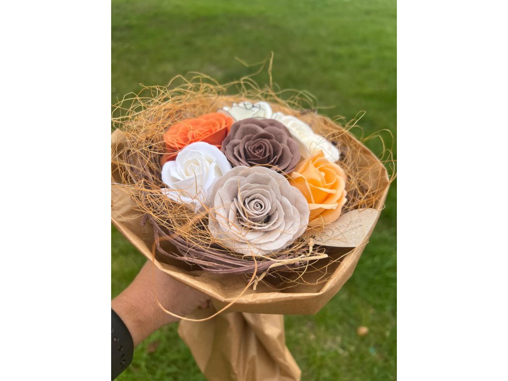 Ručně vyrobené květy z kvalitního mýdla tvoří harmonickou kytici, která se svým realistickým vzhledem a příjemnou vůní stane jedinečným dárkem pro každou příležitost. Díky své trvanlivosti nikdy neuvadne a zůstane krásnou ozdobou domova či kanceláře. Tato mýdlová kytice je perfektní volbou pro narozeniny, svátky, výročí nebo jako romantické gesto, které potěší každého obdarovaného.