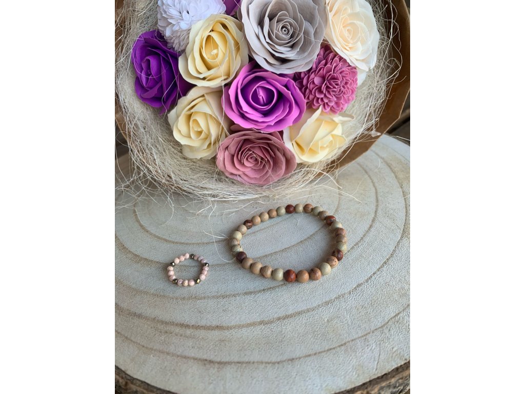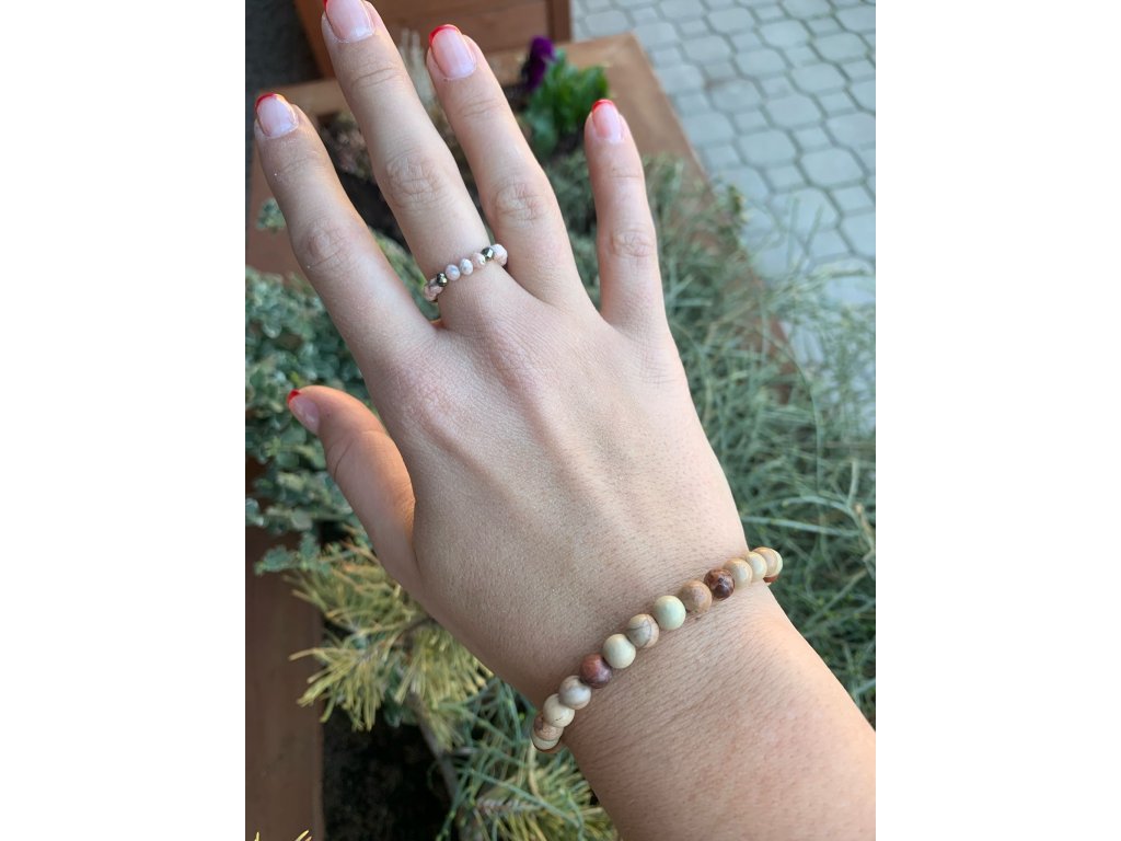 Náramek Jaspis Aqua Terra 6 mm + Prstýnek Argentinský rodochrozit a Pyrit 3 mm