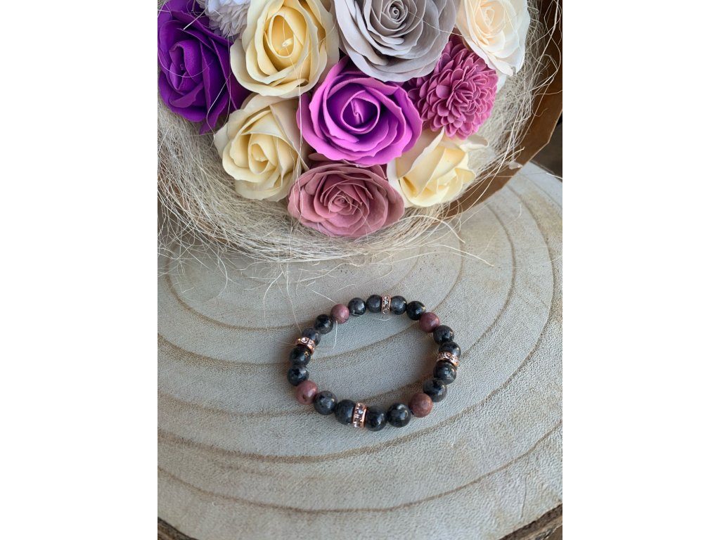 Náramek z labradoritu a rodonitu.