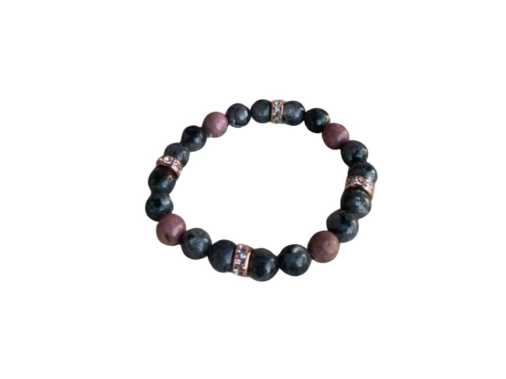 Náramek Labradorit + Rodonit 8 mm s přízdobou