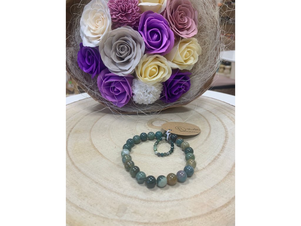 Náramek + Prstýnek Achát indický 8 mm a 3 mm