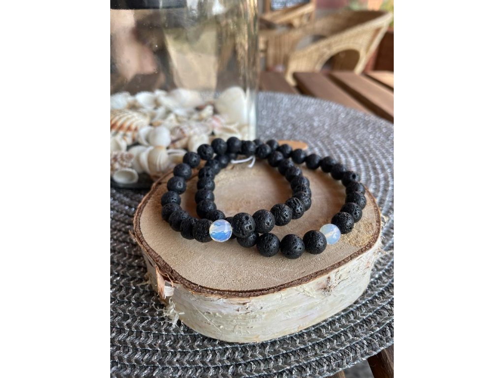 Párové náramky Láva černá + Měsíční Kámen (Opalit) 8 mm