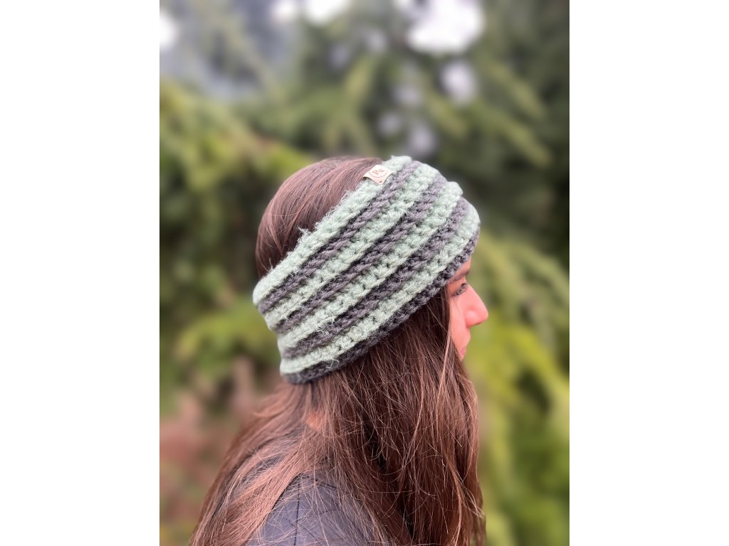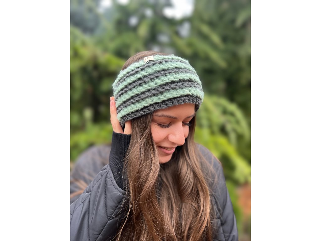 Háčkovaná čelenka - zelenošedá