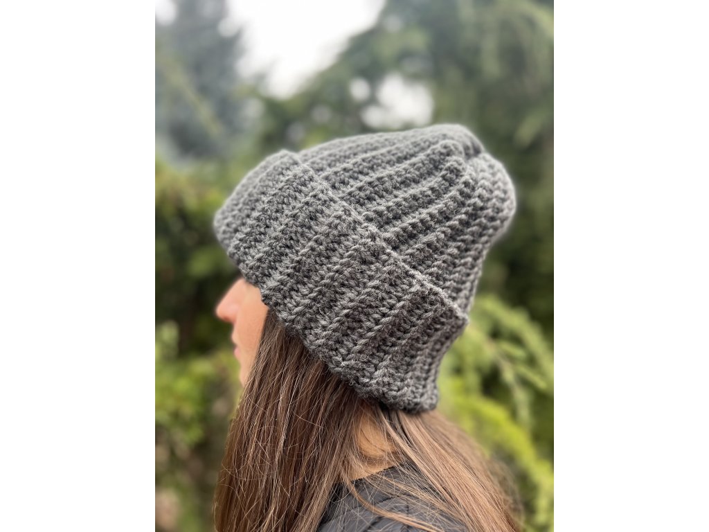 Háčkovaná čepice - Šedá