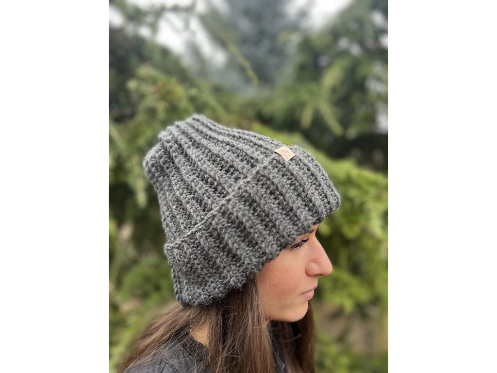 Ručně háčkovaná čepice ze 100% merino vlny