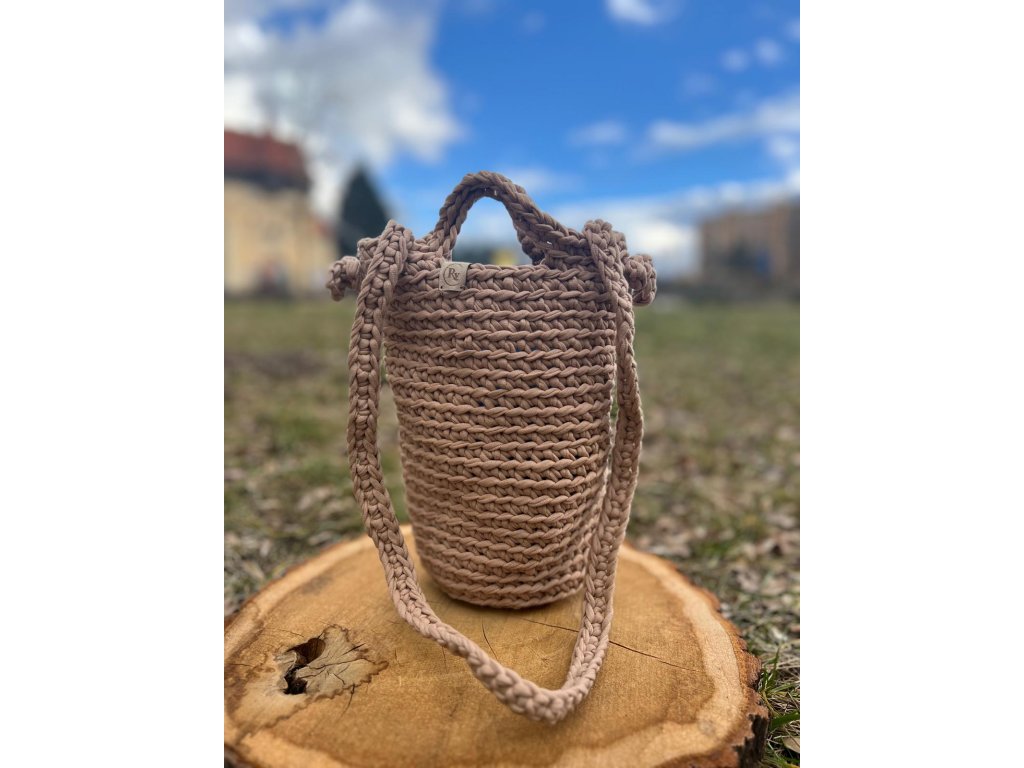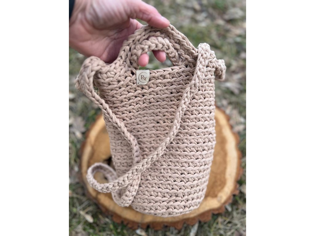 Ručně háčkovaná kabelka s pevným tvarem a s ouškem pro nošení. Nadčasový doplněk pro každodenní nošení, vyrobený z kvalitní směsi polyesteru a bavlny.