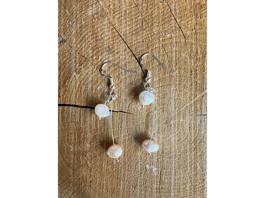 Visací náušnice s pravou říční perlou na stříbrném drátku. Jemný, ručně vyráběný doplněk s nadčasovým kouzlem.