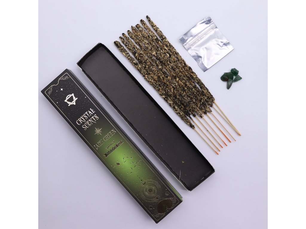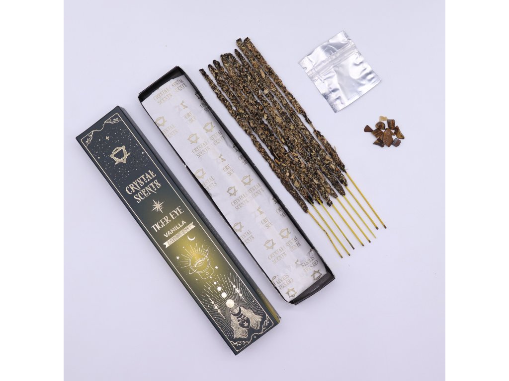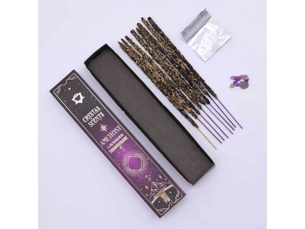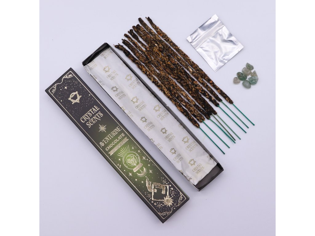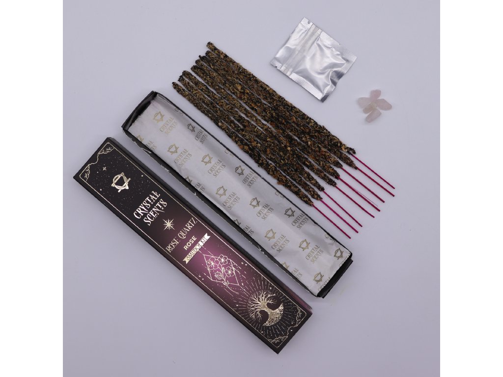 Každé balení obsahuje 10 ručně vyrobených tyčinek spárovaných s pravým krystalem a obálkou se vzkazem, což poskytuje promyšlenou prezentaci připravenou k darování. Od uzemňujícího tepla červeného achátu až po ochrannou energii turmalínu, každá vůně je navržena tak, aby podporovala meditaci, stanovení záměru, sezónní rituály a domácí atmosféru. Tato kolekce, zabalená do elegantního nebeského uměleckého díla, které zdůrazňuje jedinečnou energii každého krystalu, je ideální pro prodejní prezentace, wellness prostory nebo jako dárky.